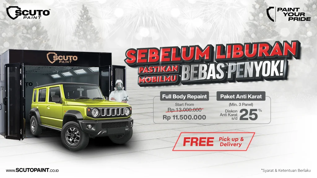 Liburan makin tenang tanpa khawatir tampilan mobil! Scuto Paint menghadirkan promo spesial untuk memastikan mobil kamu kembali mulus, kinclong, dan terlindungi sebelum bepergian jauh.